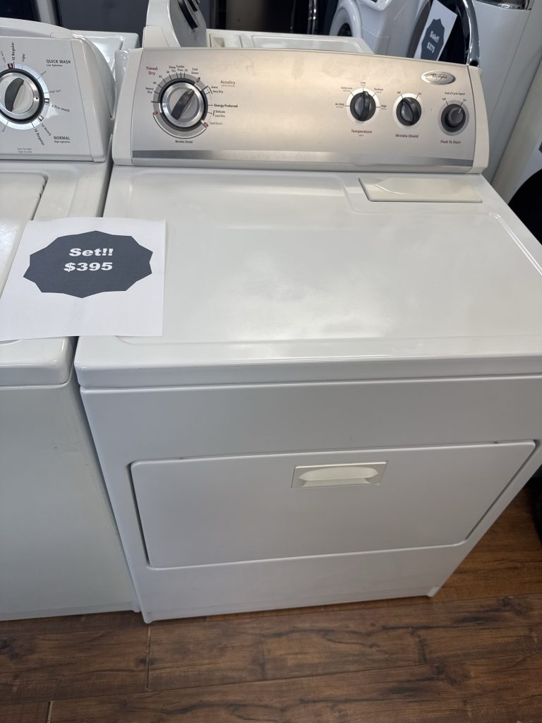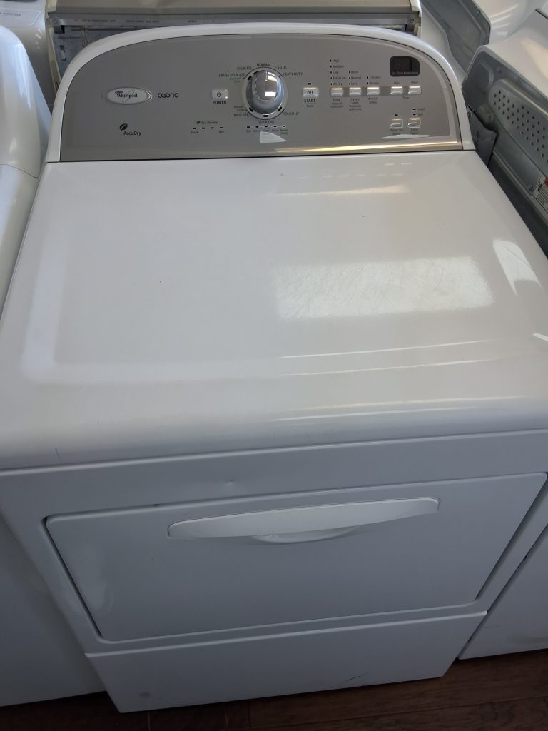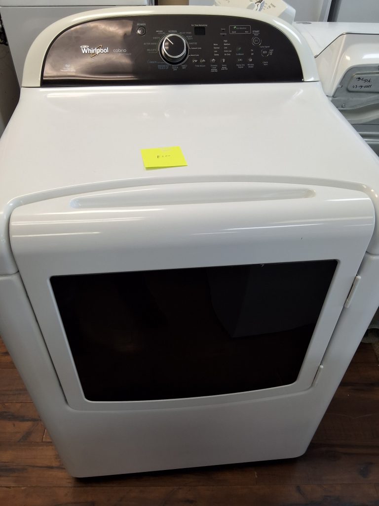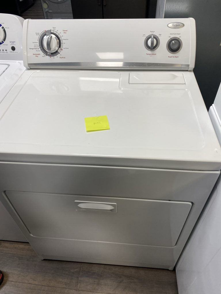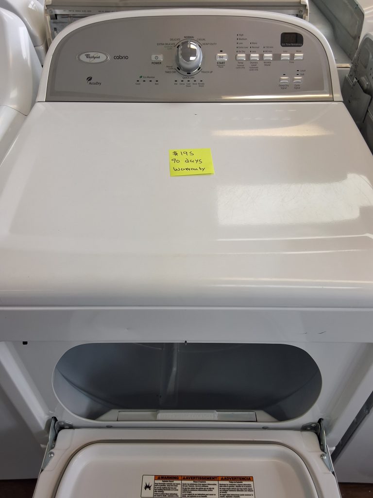 Product Information Brand:Â Whirlpool Model:Â WED4950HW Warranty Terms: 1 year Appearance Type:Â Top Load Fuel Type:Â Electric Color:Â White Stackable:Â No Location of Controls:Â Rear Dimensions Width:Â 29 Inch Depth:Â 28 1/4 Inch Height:Â 43 Inch Capacity:Â 7 Cu. Ft. Smart WiFi:Â No Features Control Type:Â Knobs Cycles:Â 14 Temperature Settings:Â 3 Steam Cycle:Â No Sensor Dry:Â Yes Stainless Steel Drum:Â No Reversible Door:Â No Dry Rack:Â No Extra Large Lint Filter:Â No Venting Type:Â Vented Interior […]