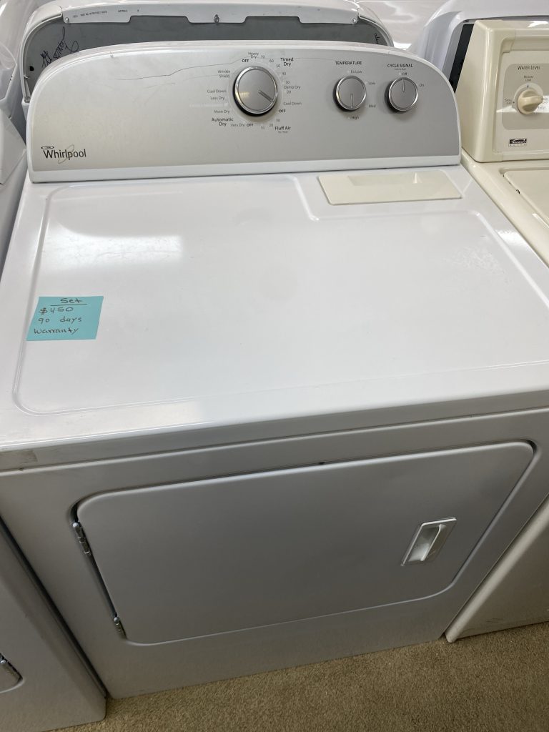 Product Information Brand:Â Whirlpool Model:Â WED4950HW Warranty Terms: 1 year Appearance Type:Â Top Load Fuel Type:Â Electric Color:Â White Stackable:Â No Location of Controls:Â Rear Dimensions Width:Â 29 Inch Depth:Â 28 1/4 Inch Height:Â 43 Inch Capacity:Â 7 Cu. Ft. Smart WiFi:Â No Features Control Type:Â Knobs Cycles:Â 14 Temperature Settings:Â 3 Steam Cycle:Â No Sensor Dry:Â Yes Stainless Steel Drum:Â No Reversible Door:Â No Dry Rack:Â No Extra Large Lint Filter:Â No Venting Type:Â Vented Interior […]