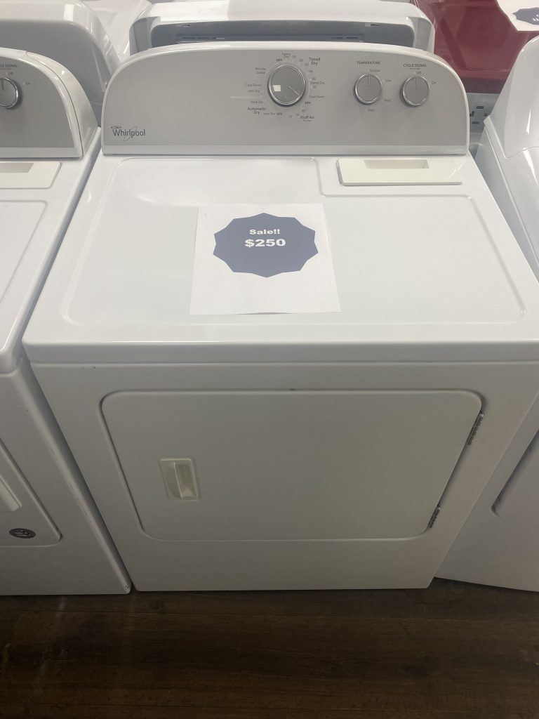 Capacity A roomy 7.0 cu ft drum—ideal for large loads, bulky items like comforters, or family-sized laundry days. Features AutoDry™, which uses moisture sensing to prevent overdrying and energy waste. The Wrinkle Shield™ option tumbles clothing for up to 40 minutes after the cycle ends to reduce wrinkling. Includes standard cycles such as Normal and Timed Dry, with adjustable end-of-cycle alerts and a reversible door setup. Controls & Convenience Equipped with rotary knobs and a top-mounted lint screen—simple, reliable, and easy to use. Adds convenience with a large lint screen, adjustable cycle tone, and an interior drum light for better visibility. Installation Standard electric dryer lineup requiring a 240 V, 30 A electrical circuit. Summary Table Feature Details Capacity 7.0 cu ft Drying Tech AutoDry™, Moisture Sensor Convenience Modes Wrinkle Shield™, Timed Dry, Normal, Lint Screen Controls Knobs, Reversible Door, Drum Light Power Needs 240 V / 30 A Extra Features Adjustable cycle alert,
