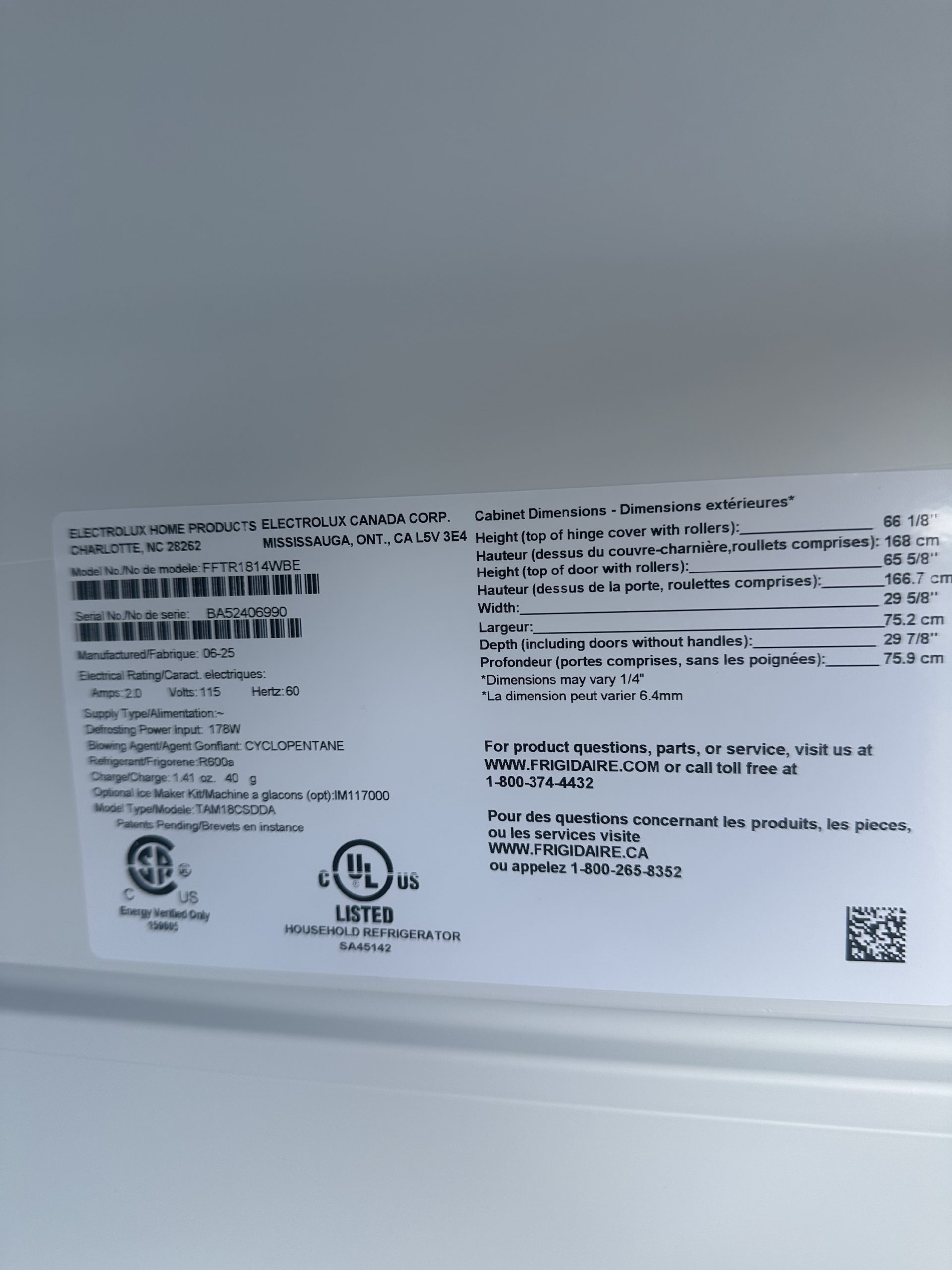 Be the first to review “Frigidaire top and bottom FFTR1814WBE”