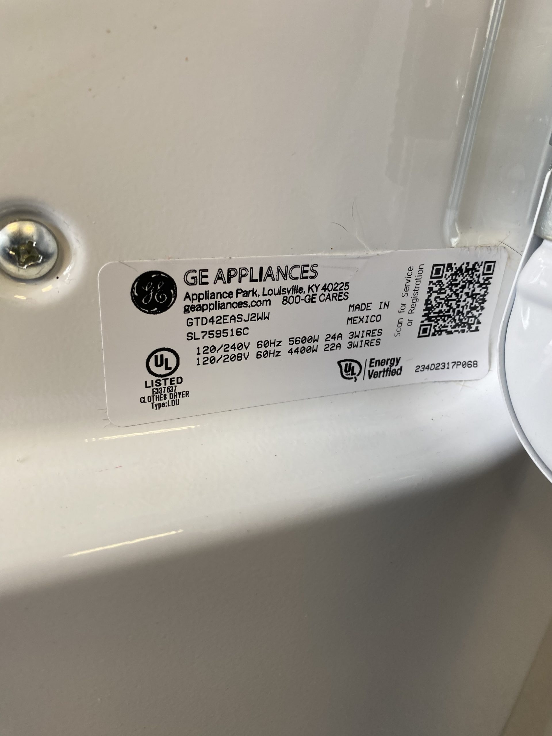 GE side load dryer SL759516C