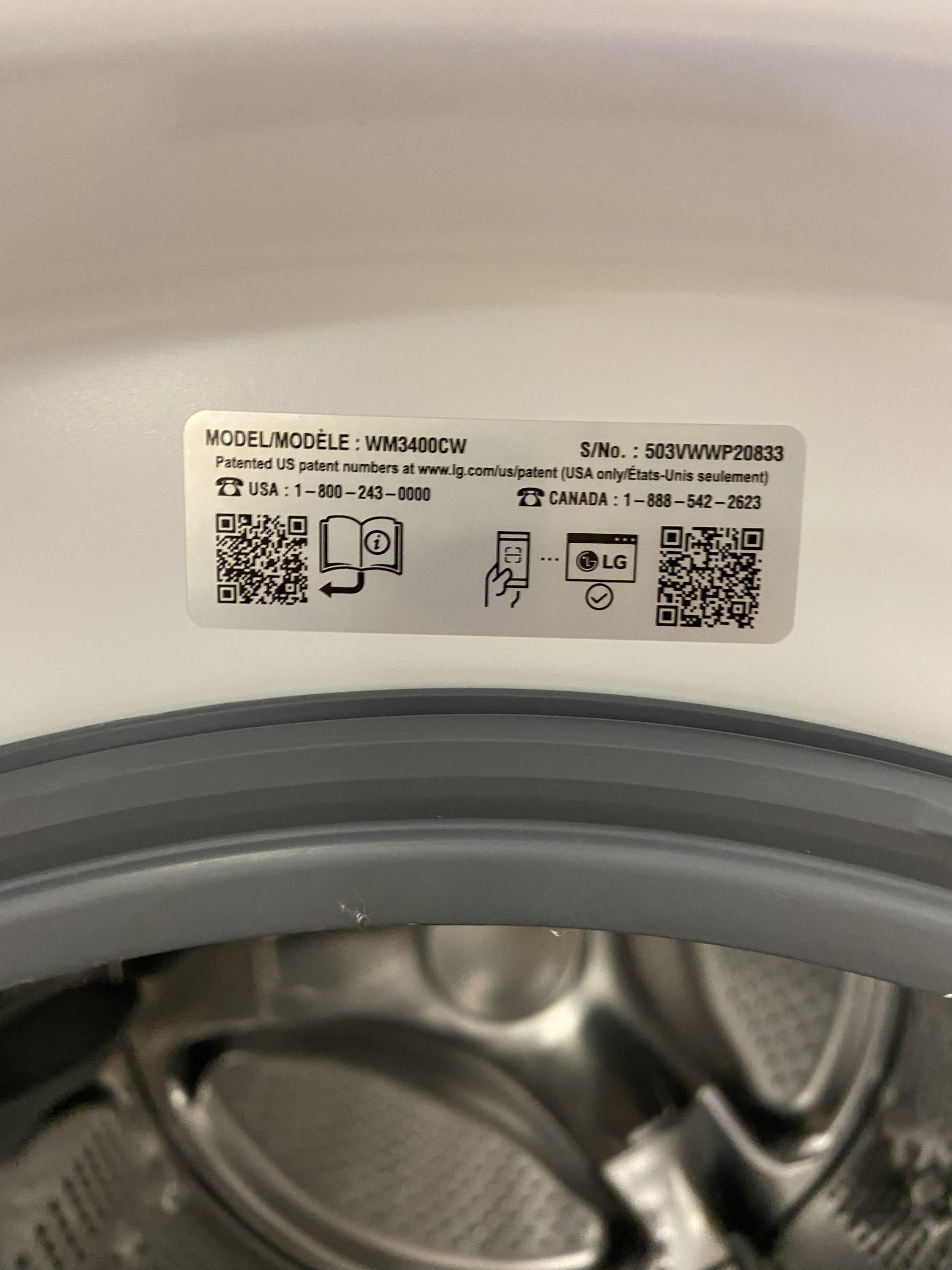 Lg front load washer WM3400CW