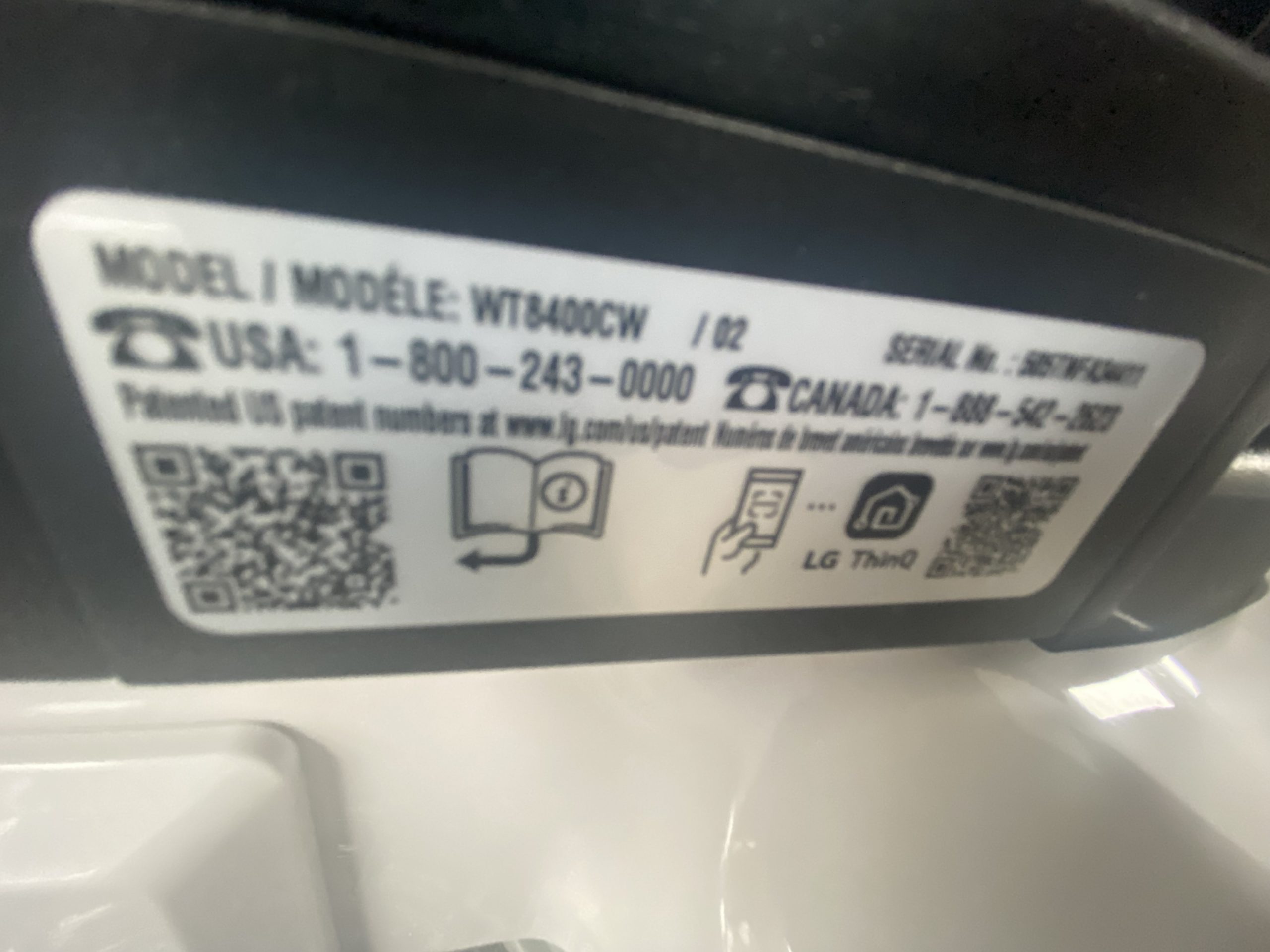 (NEW) LG Glass top washer WTS8400CW