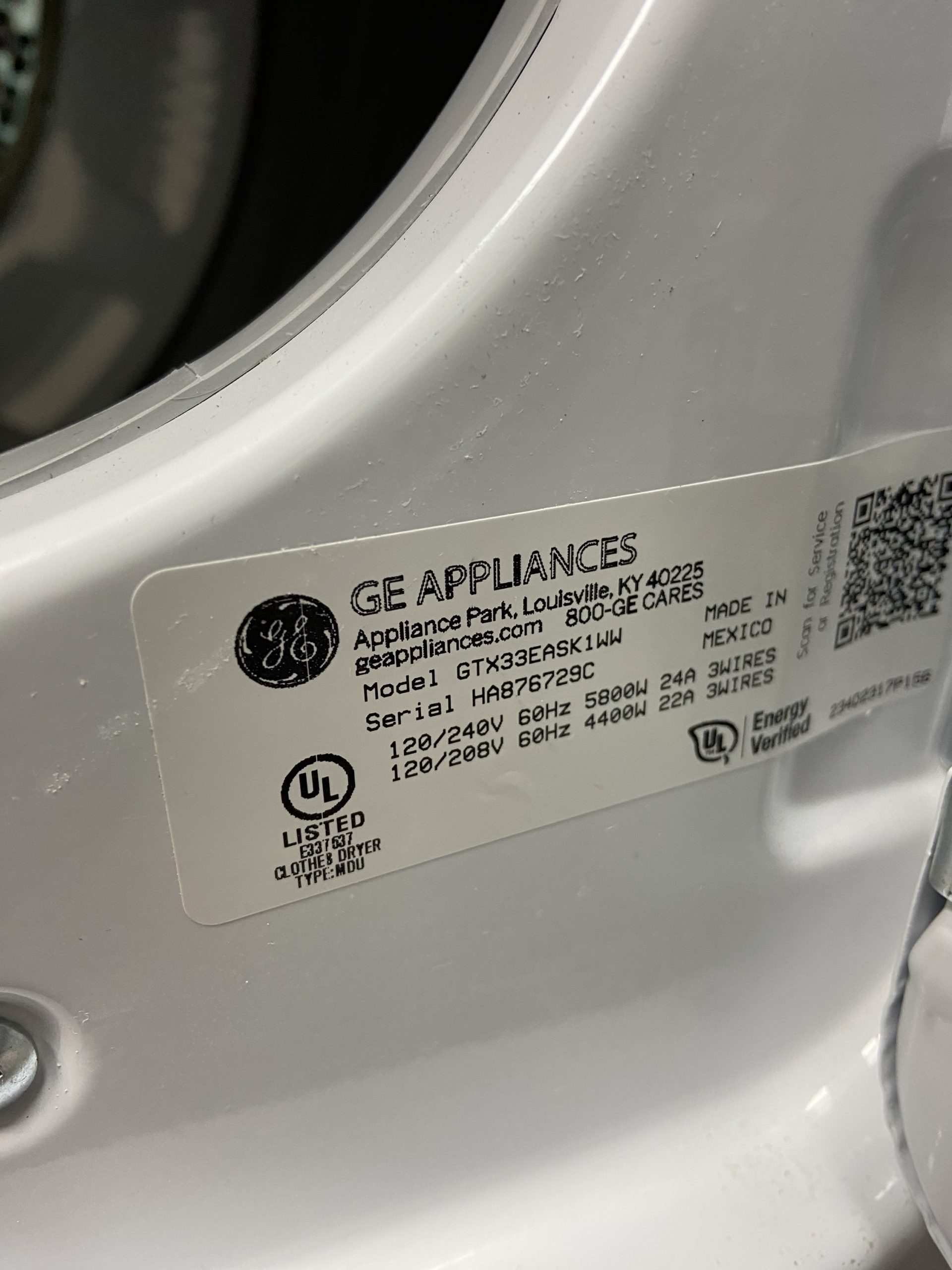 (New)GE side load dryer GTX33EASK1WW