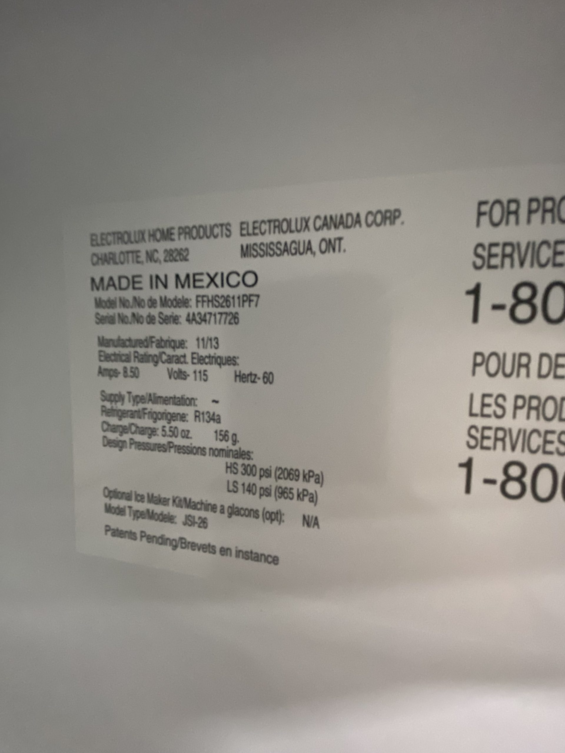 Be the first to review “(USED) Frigidaire Side By Side Refrigerator FFHS2611PF7”