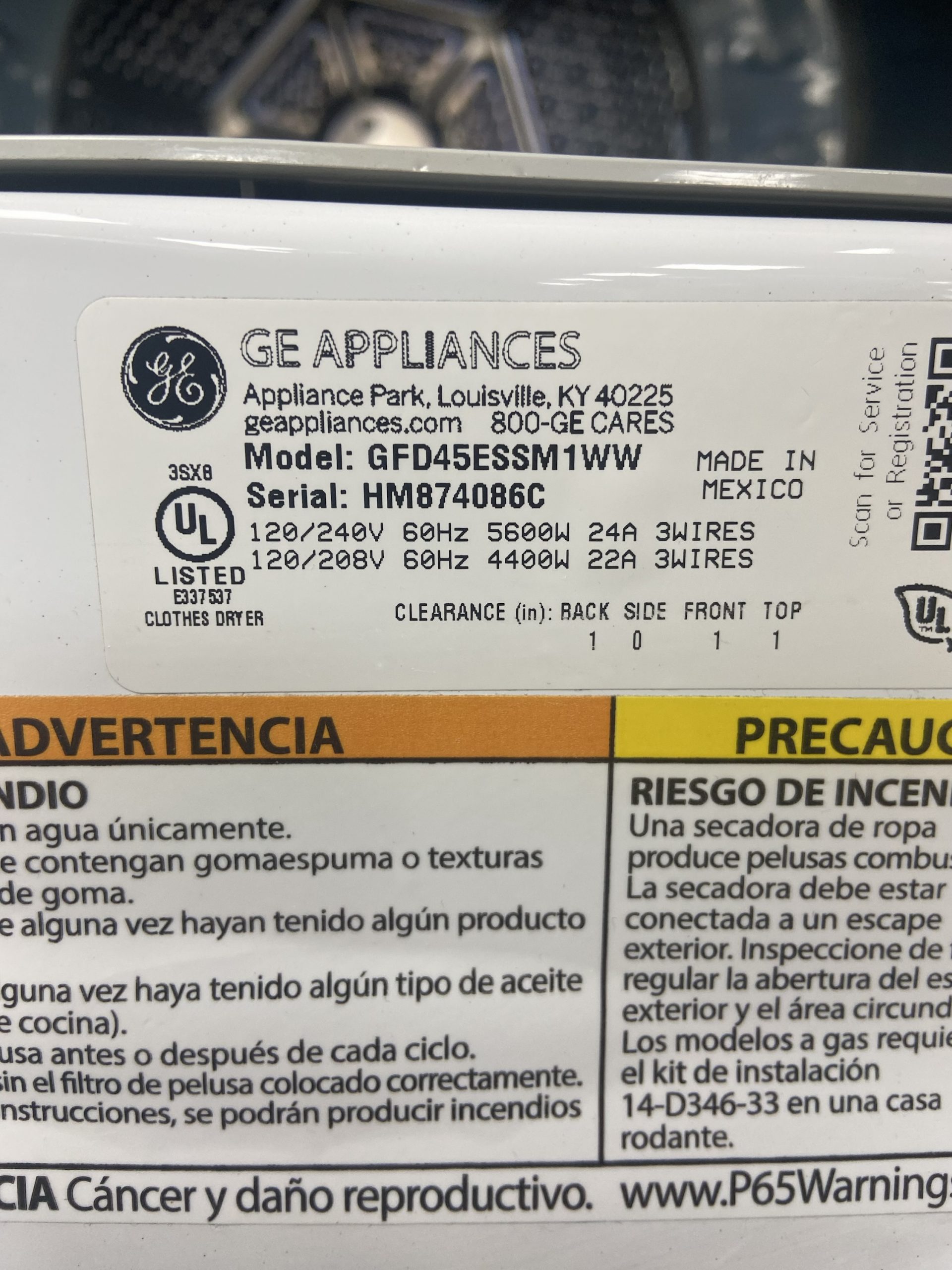 Used GE Front Load Dryer GFD45ESSM1WW