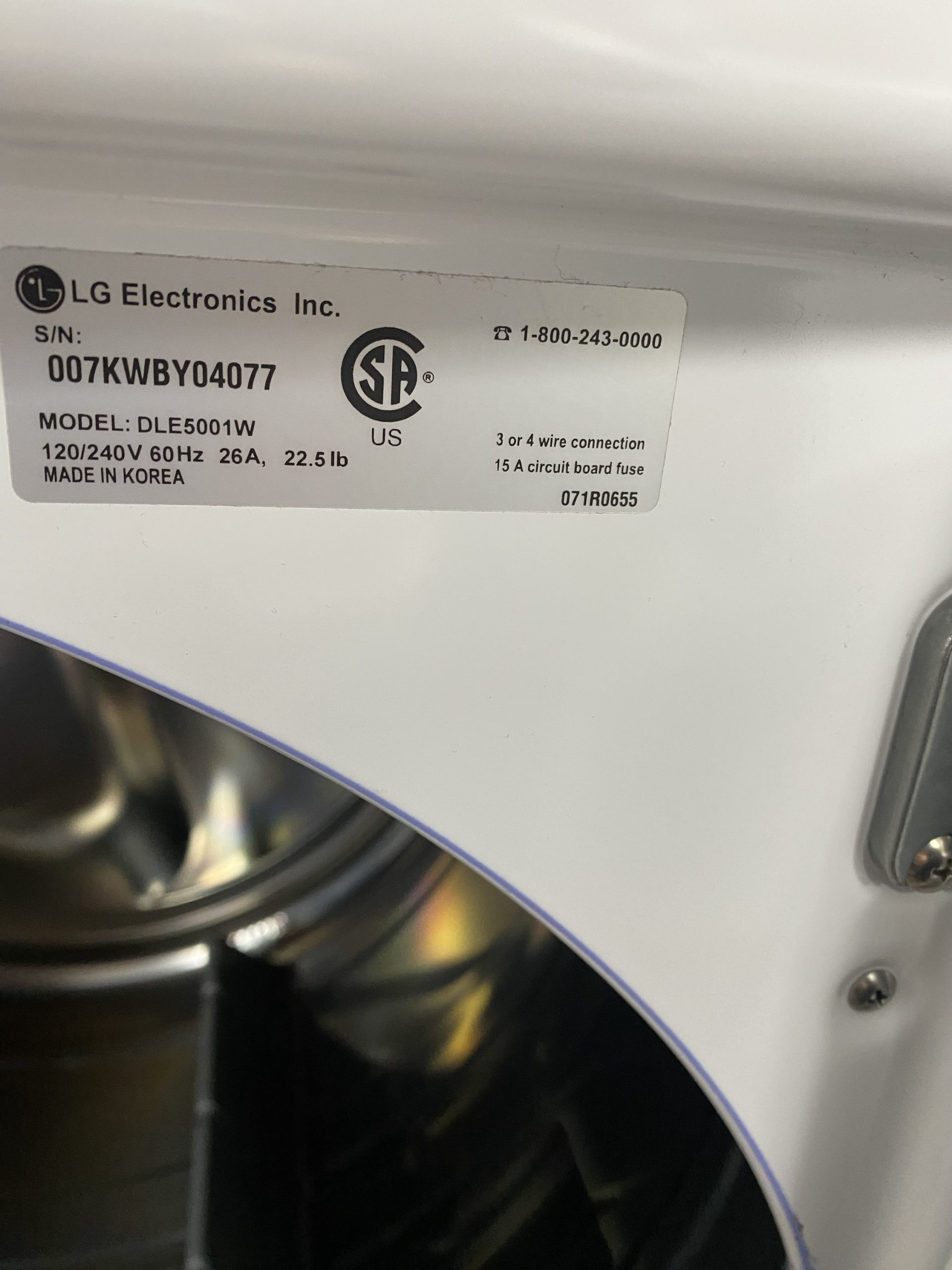 (USED) LG Dryer DLE5001W