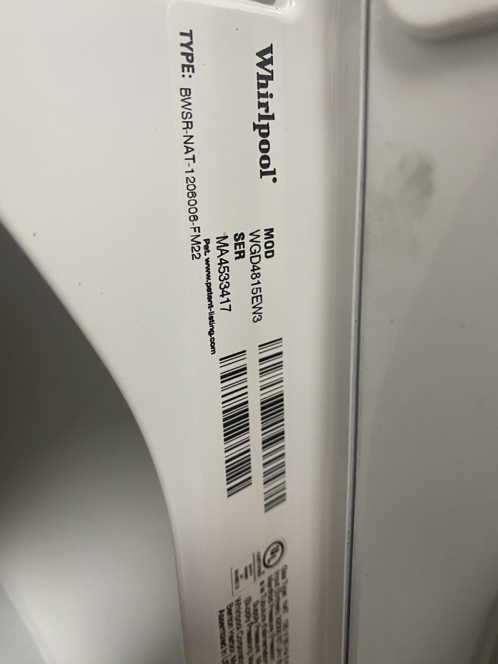 (USED) Whirlpool Gas Dryer WGD4815EW3