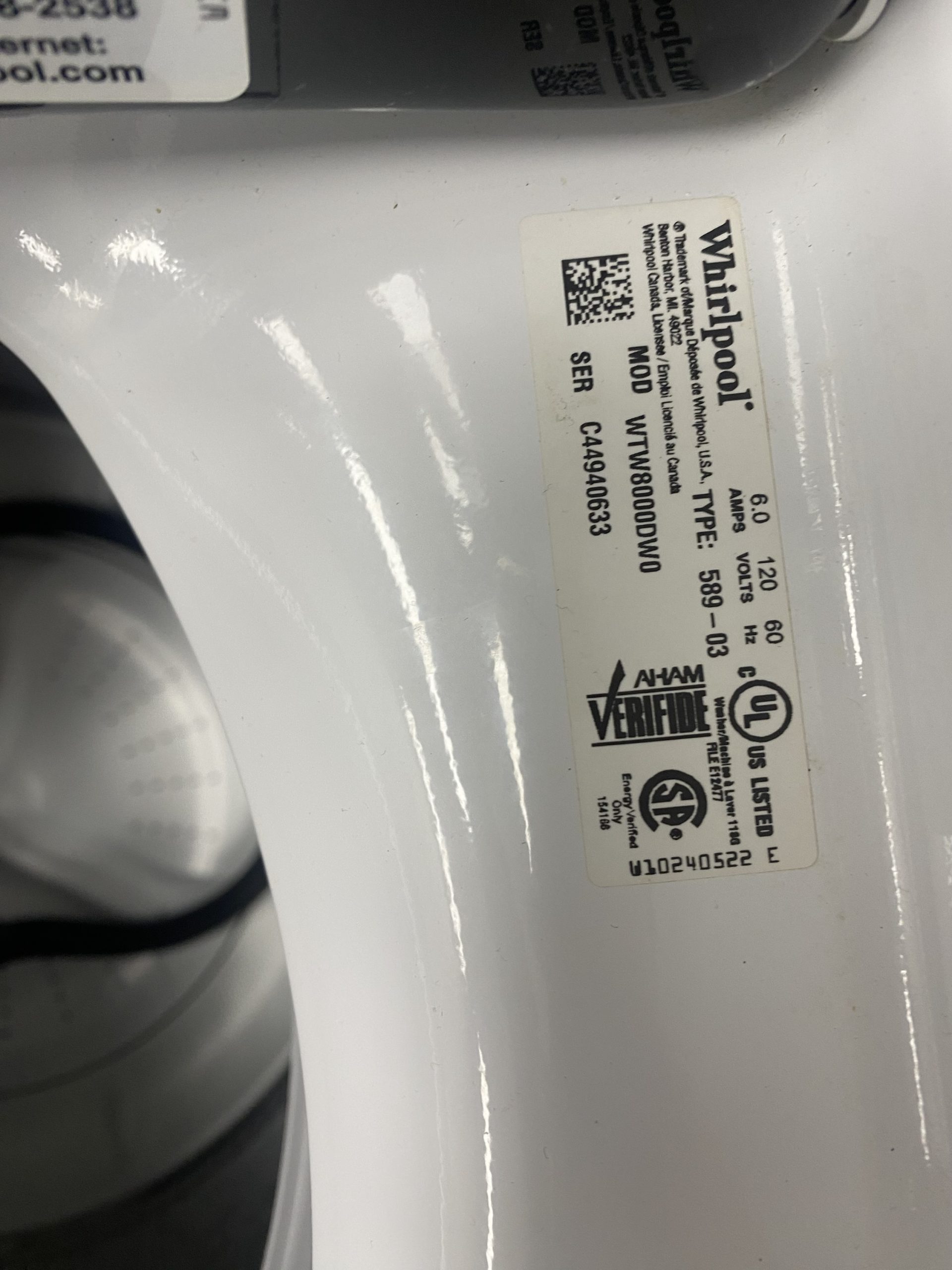 (USED) Whirlpool Top Load Washer WTW8000DW0