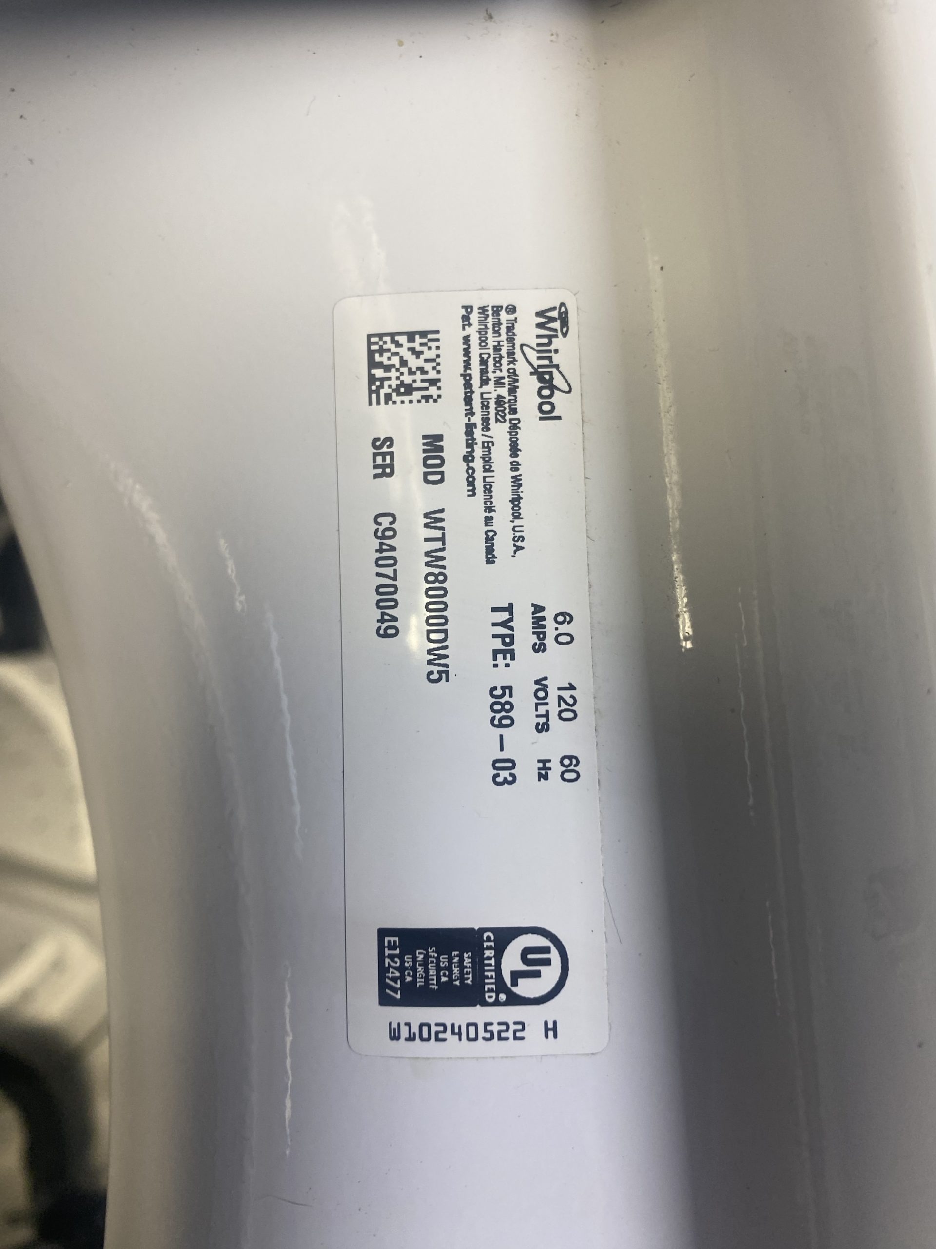 Whirlpool Cabrio glass top washer vtw8000dw5