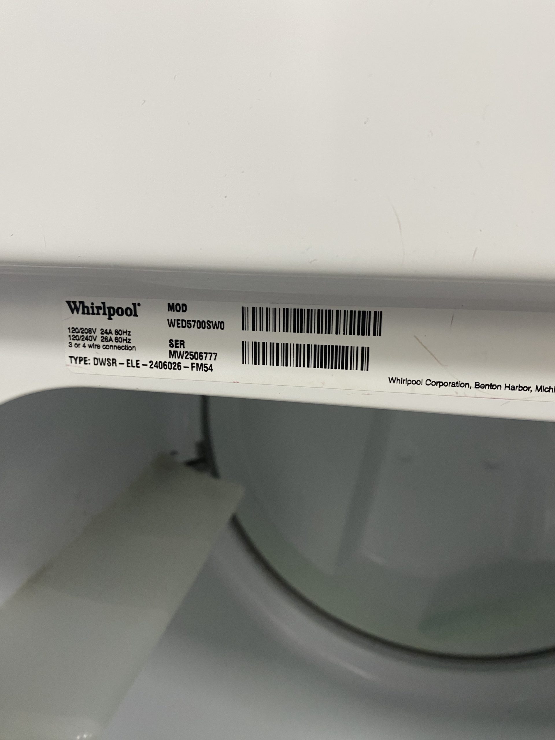 (USED) Whirlpool Dryer WED5700SWO