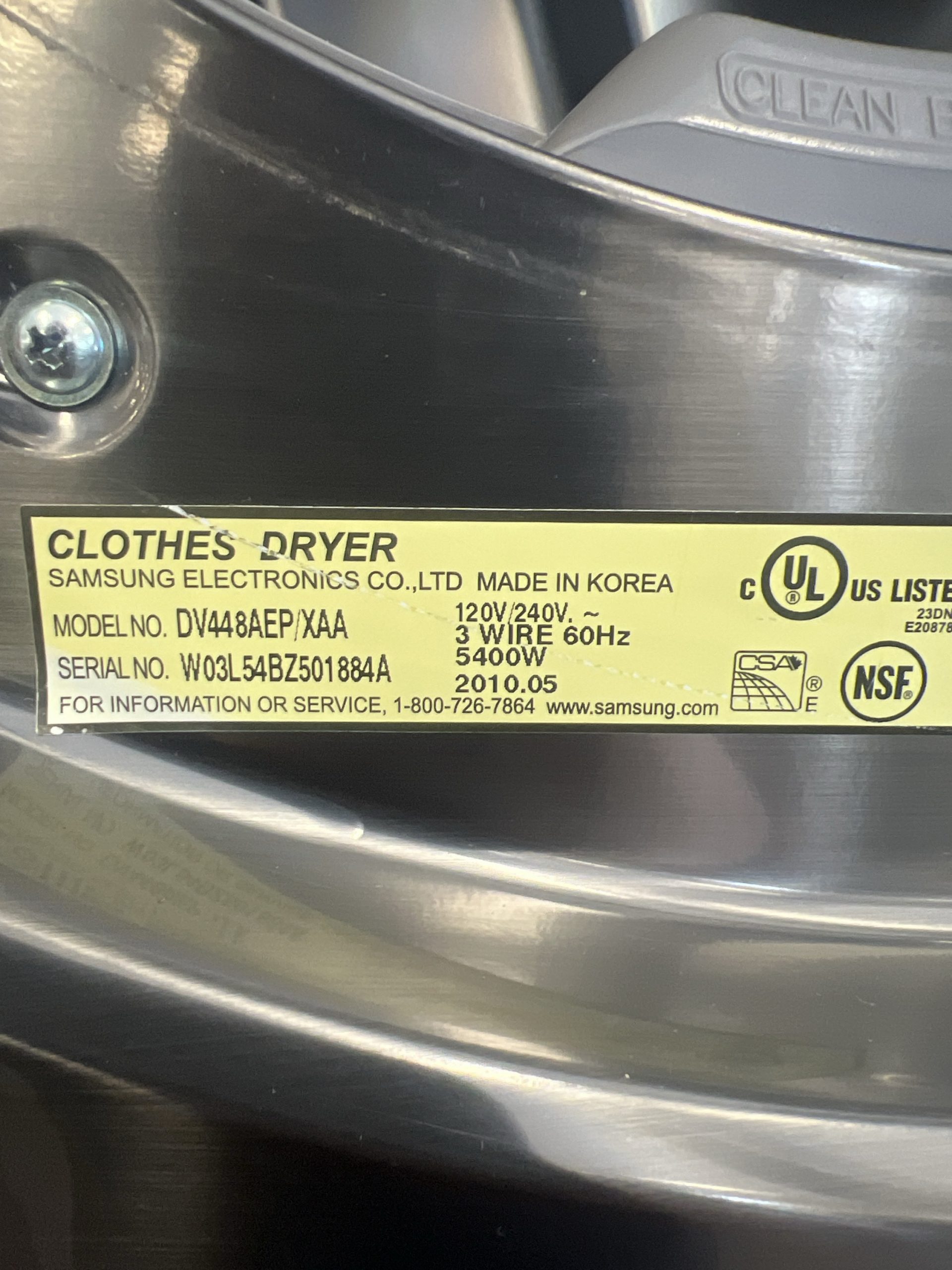 Samsung Side Load Stackable Dryer DV448AEP/XAA