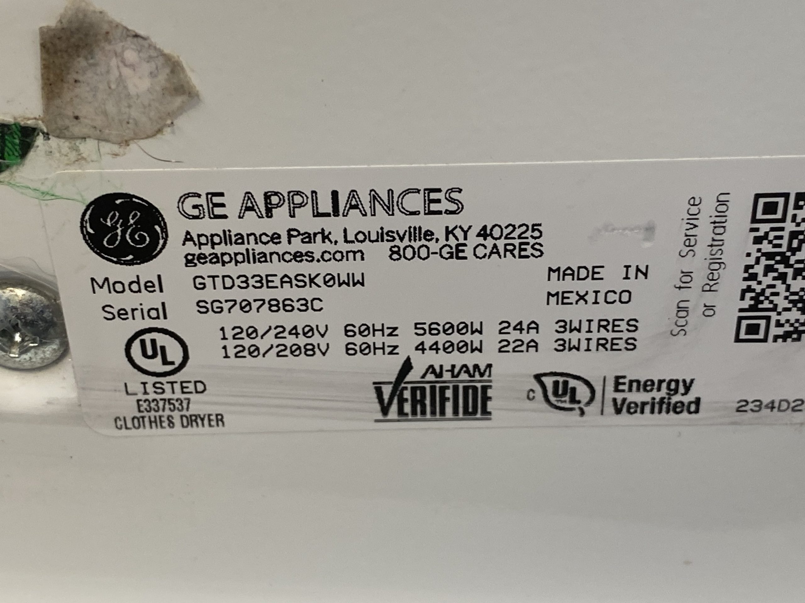 (USED) GE front load dryer gtd33eask0ww