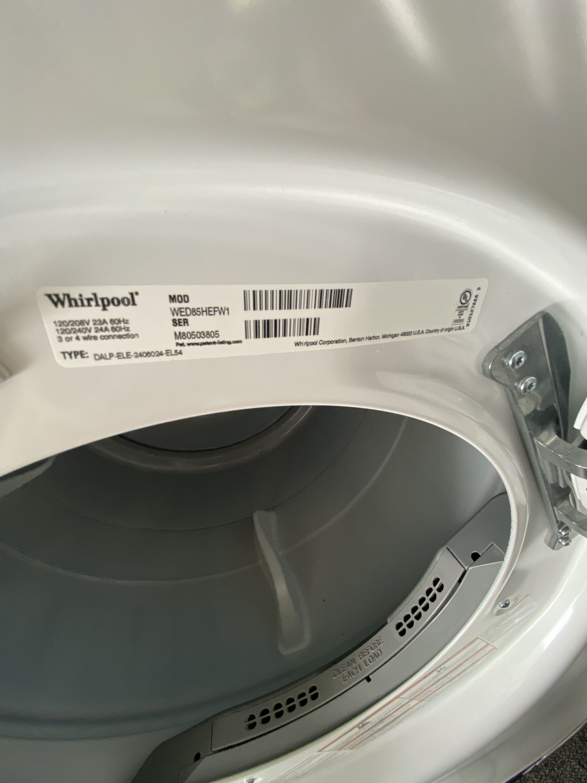 Whirlpool front load dryer WED85HEFW1