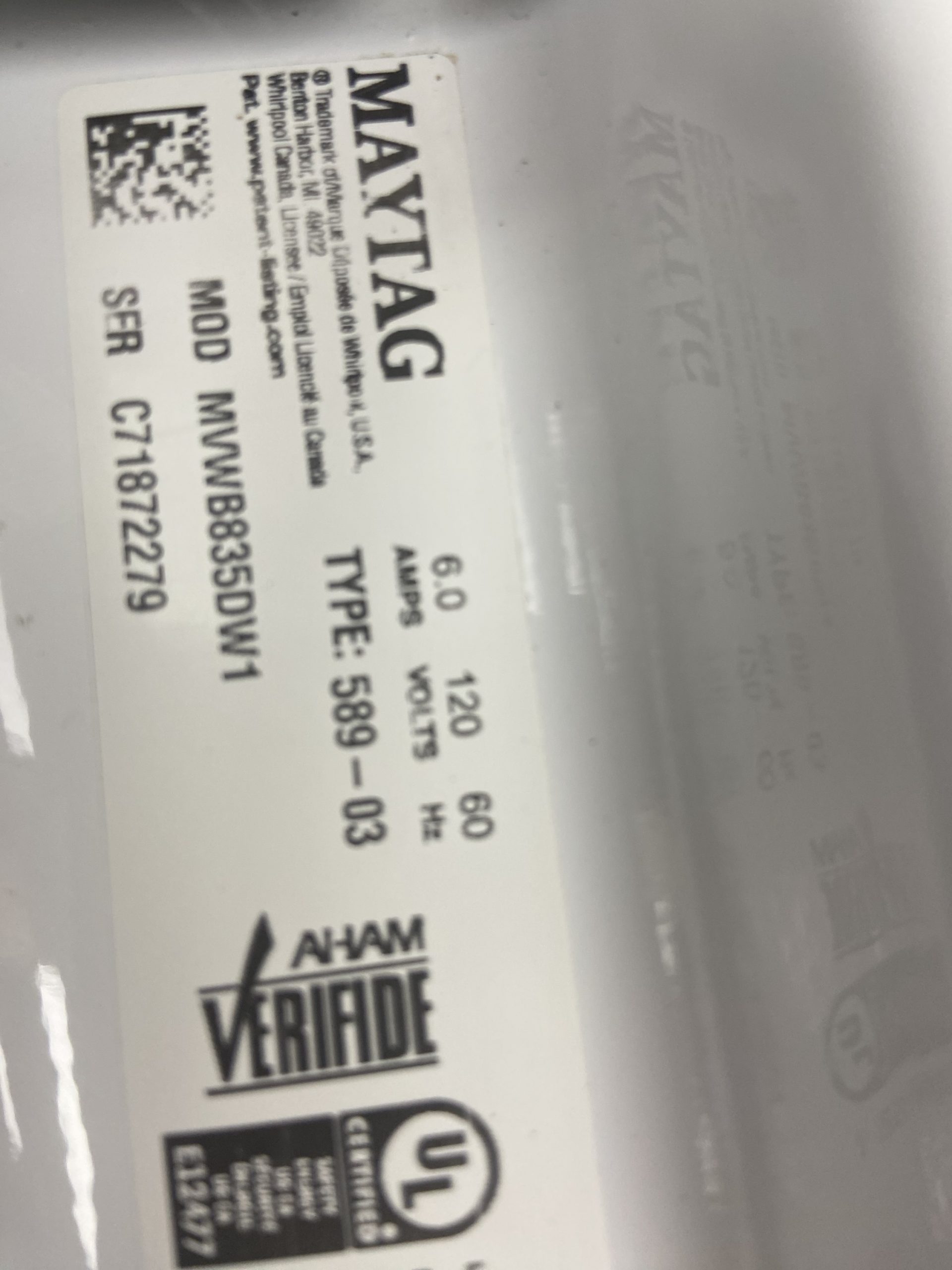 (Used) Maytag glass top washer MVWB835DW1