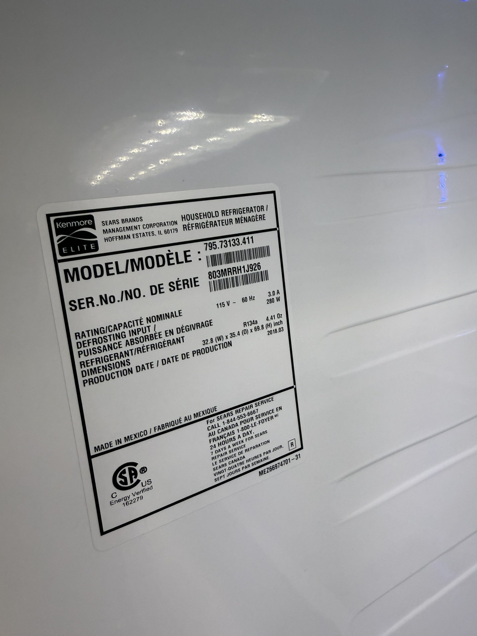 Kenmore French door refrigerator 795.73133.411