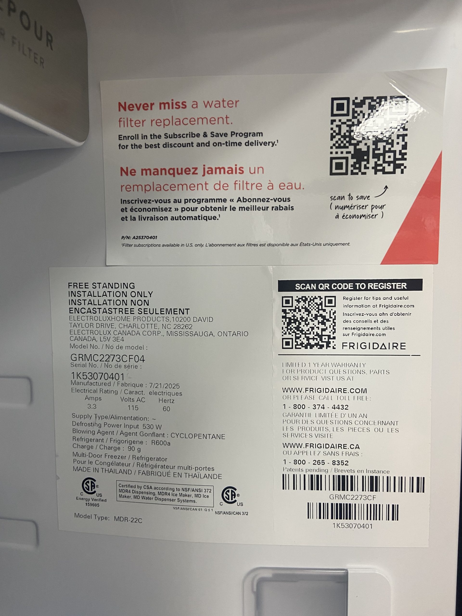 New Frigidaire French Door Fridge GRMC2273CF04