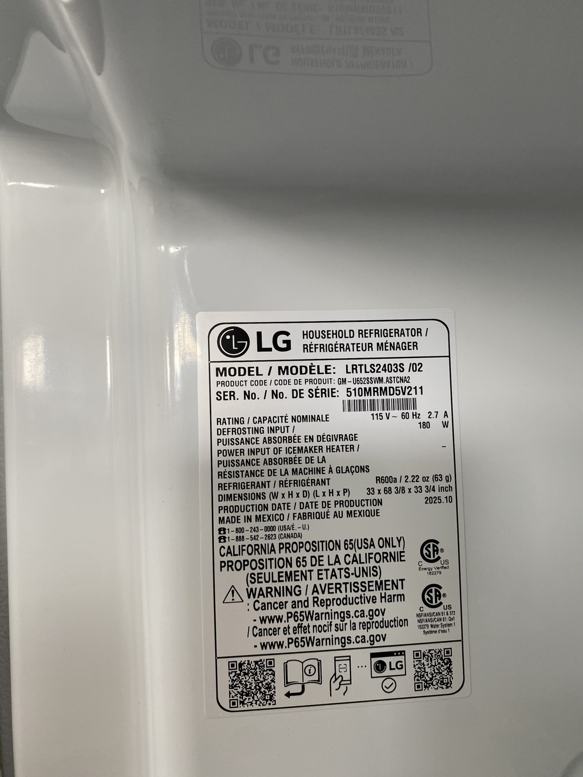 (NEW) LG Top Bottom Refrigerator LRTLS2403S/02