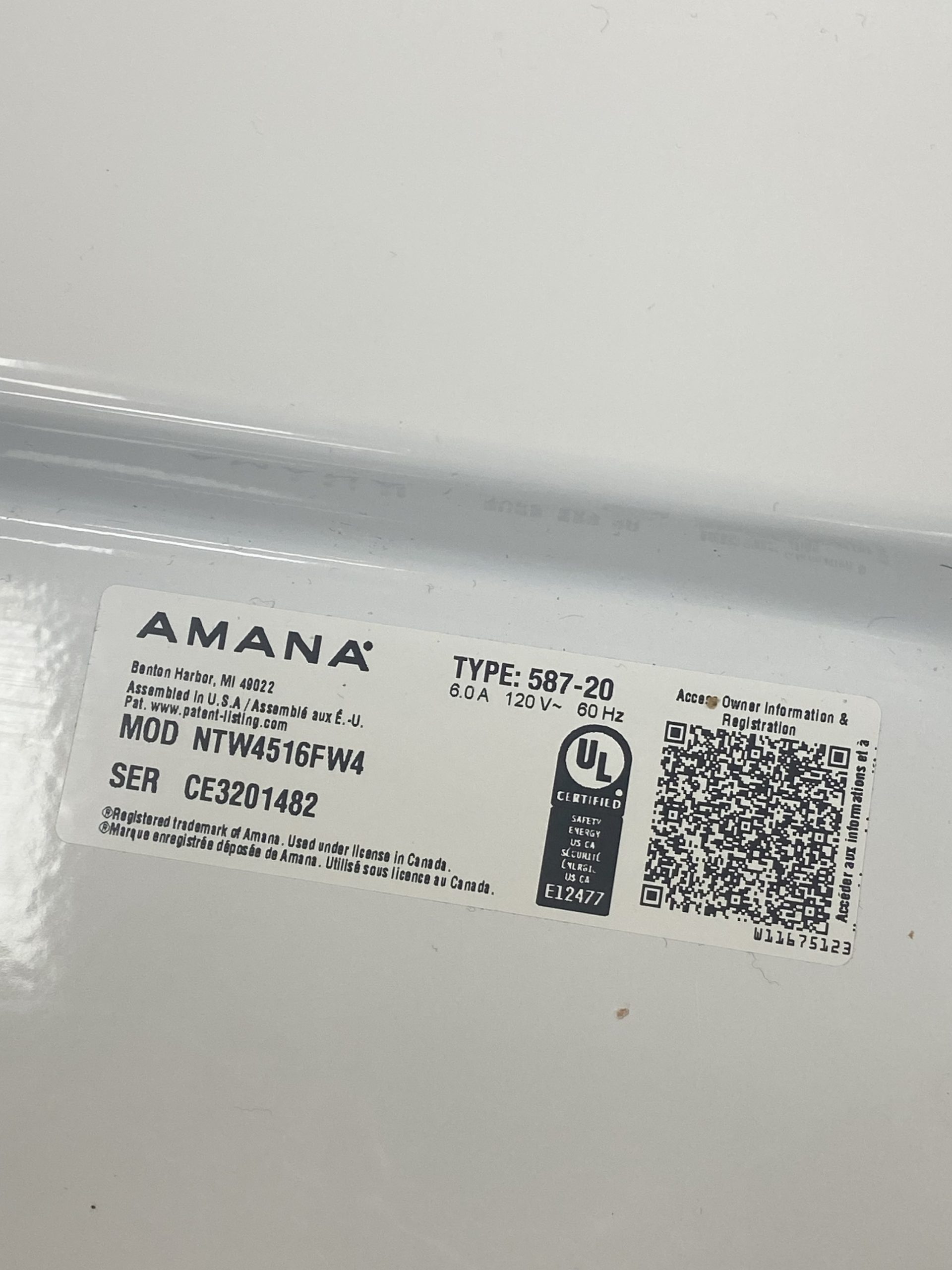(New)Amana top load washer NTW4516FW4