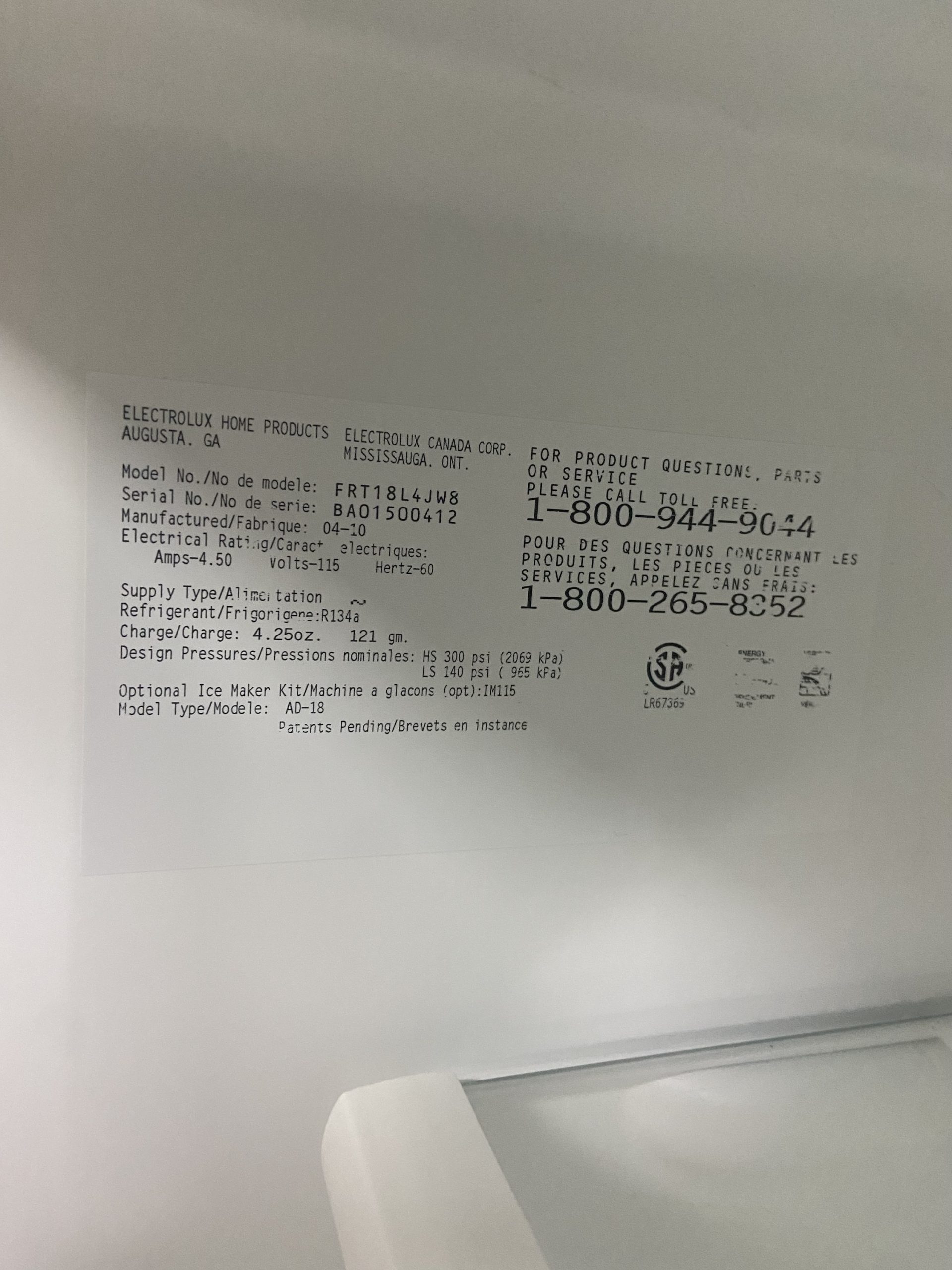 (REFURBISHED) Frigidaire Top Bottom Fridge FRT18L4JW8