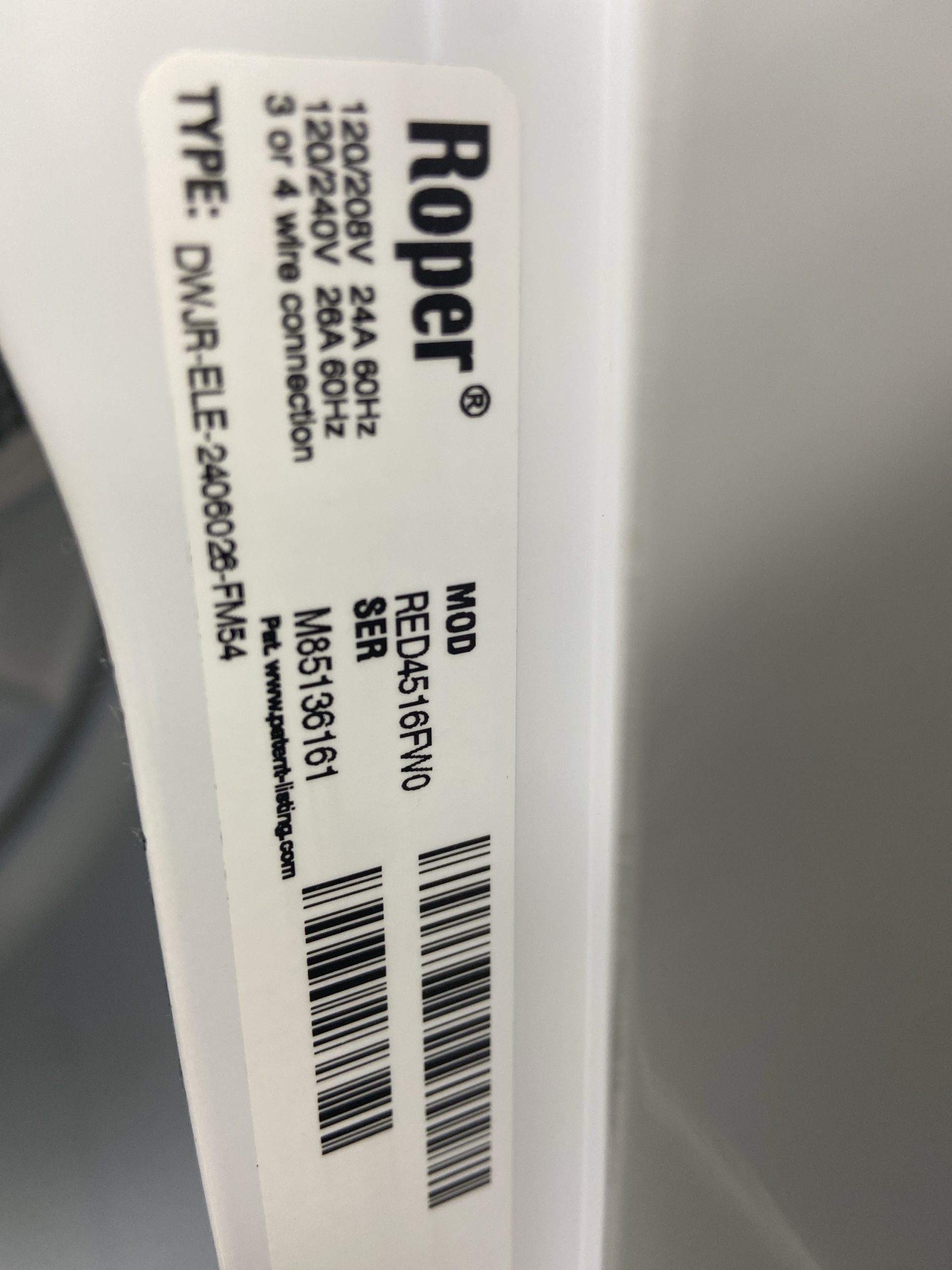 Roper dryer machine