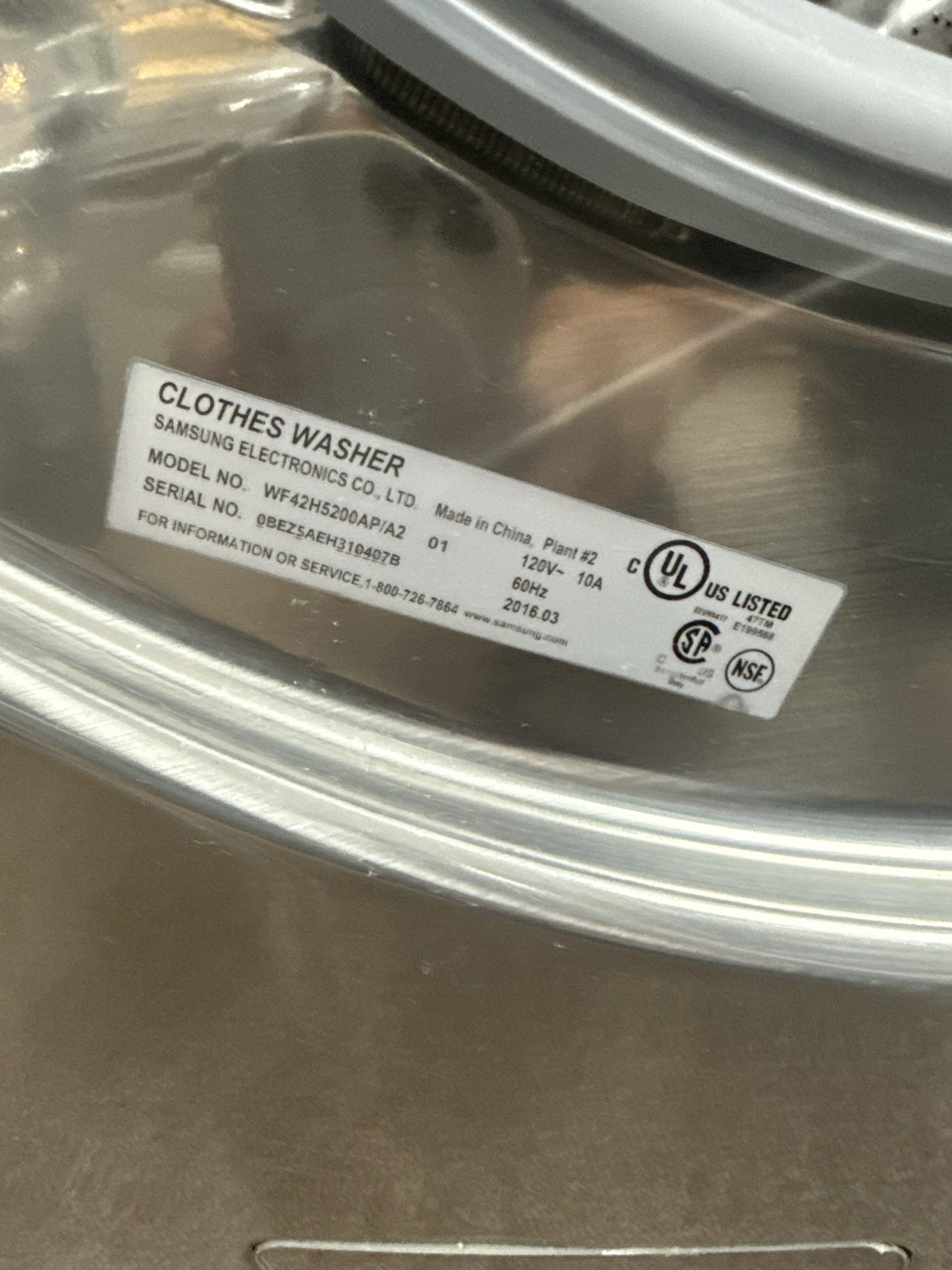 Samsung front load washer mod: wf42h5200ap/a2