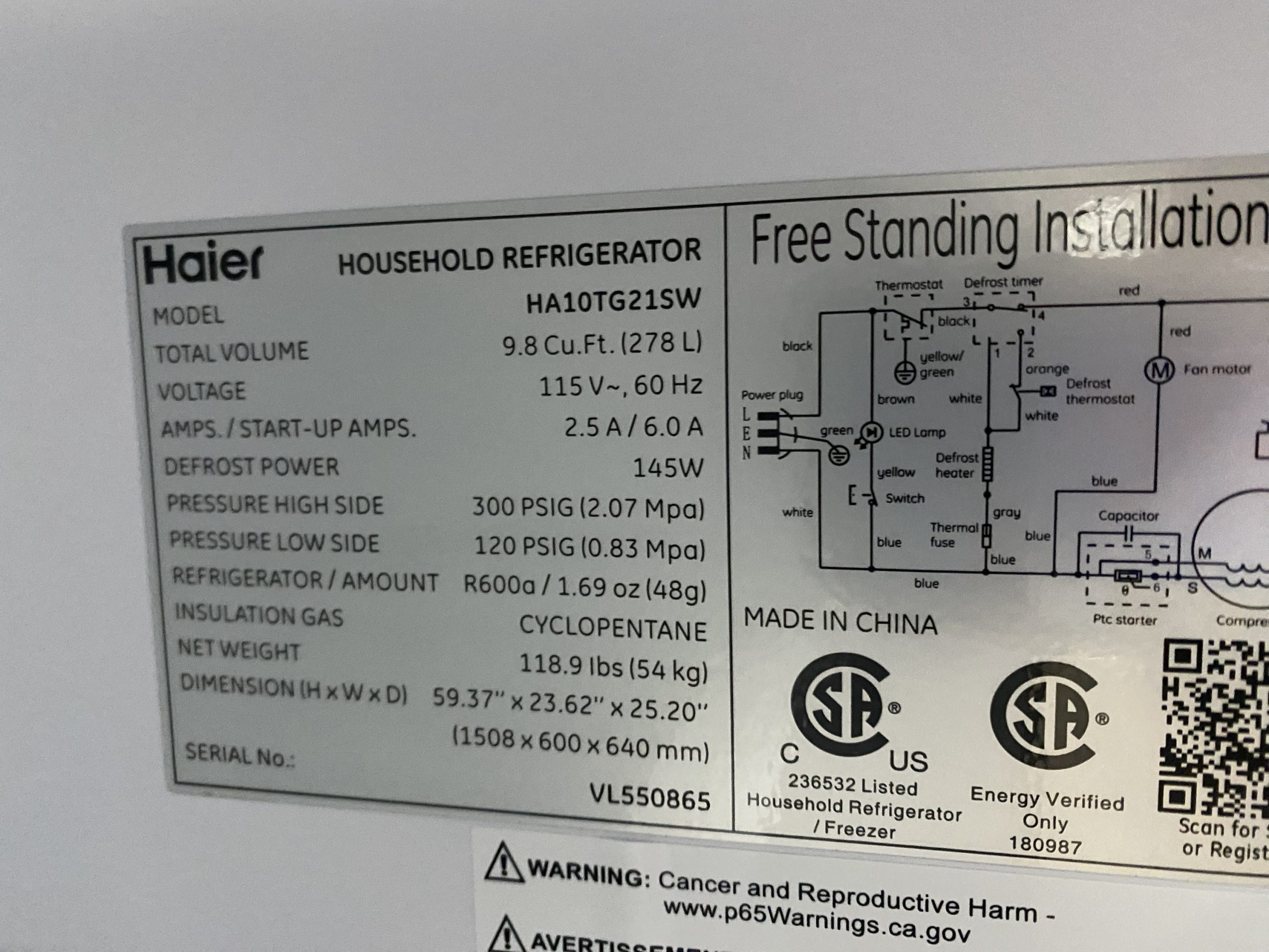 Used Haier top & bottom refrigerator HA10TG21SW