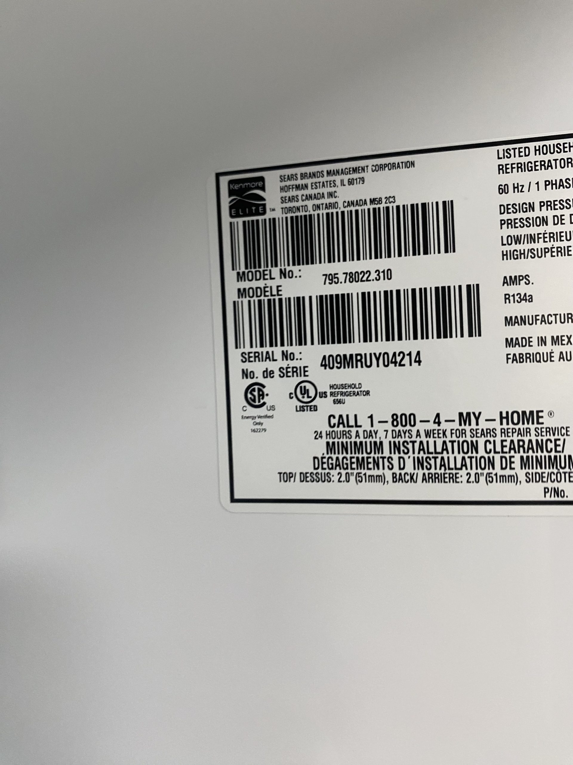 (USED) Kenmore Top & Bottom Refrigerator 795.78022.310