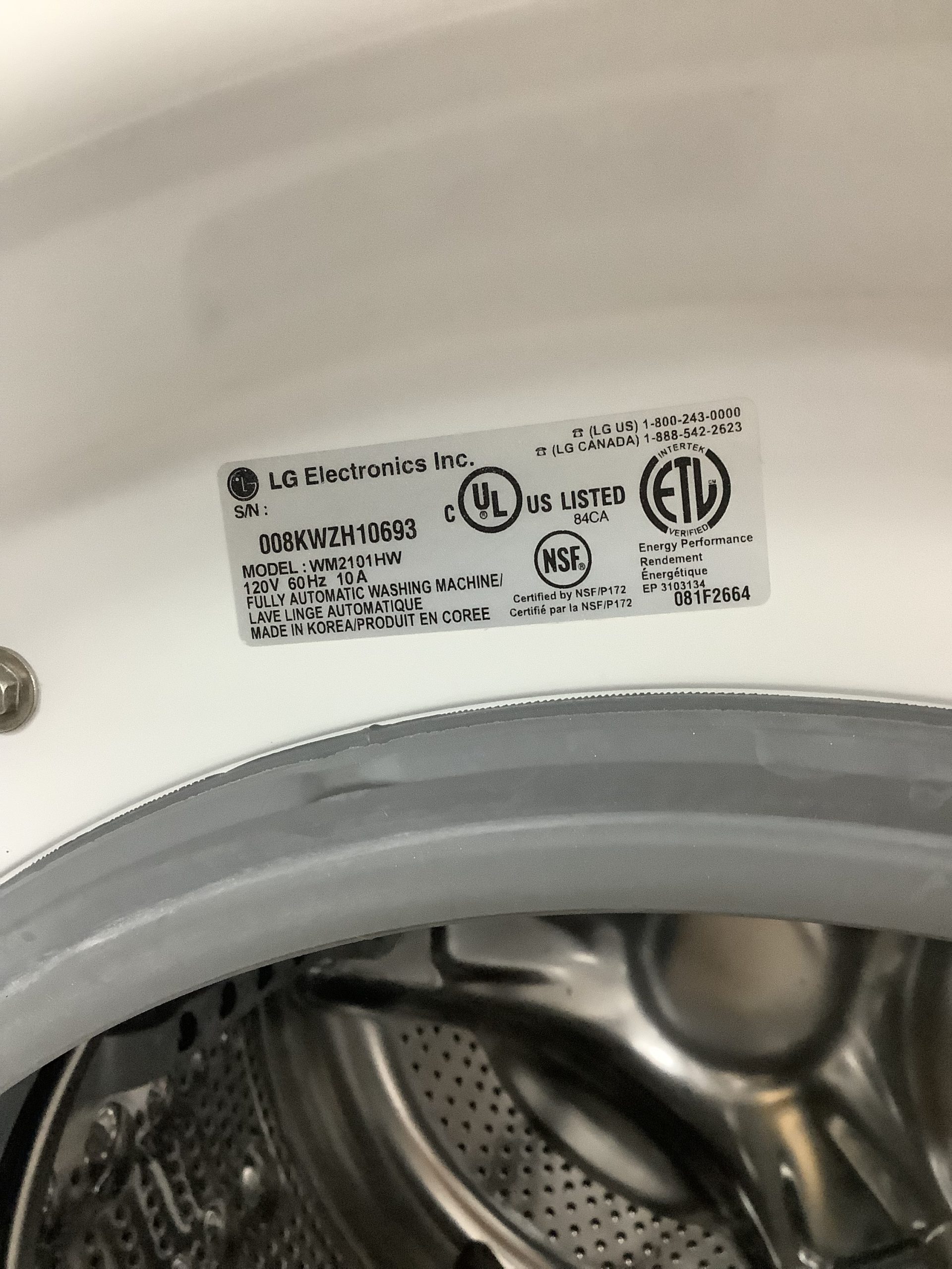 Used LG washer WM2101HW