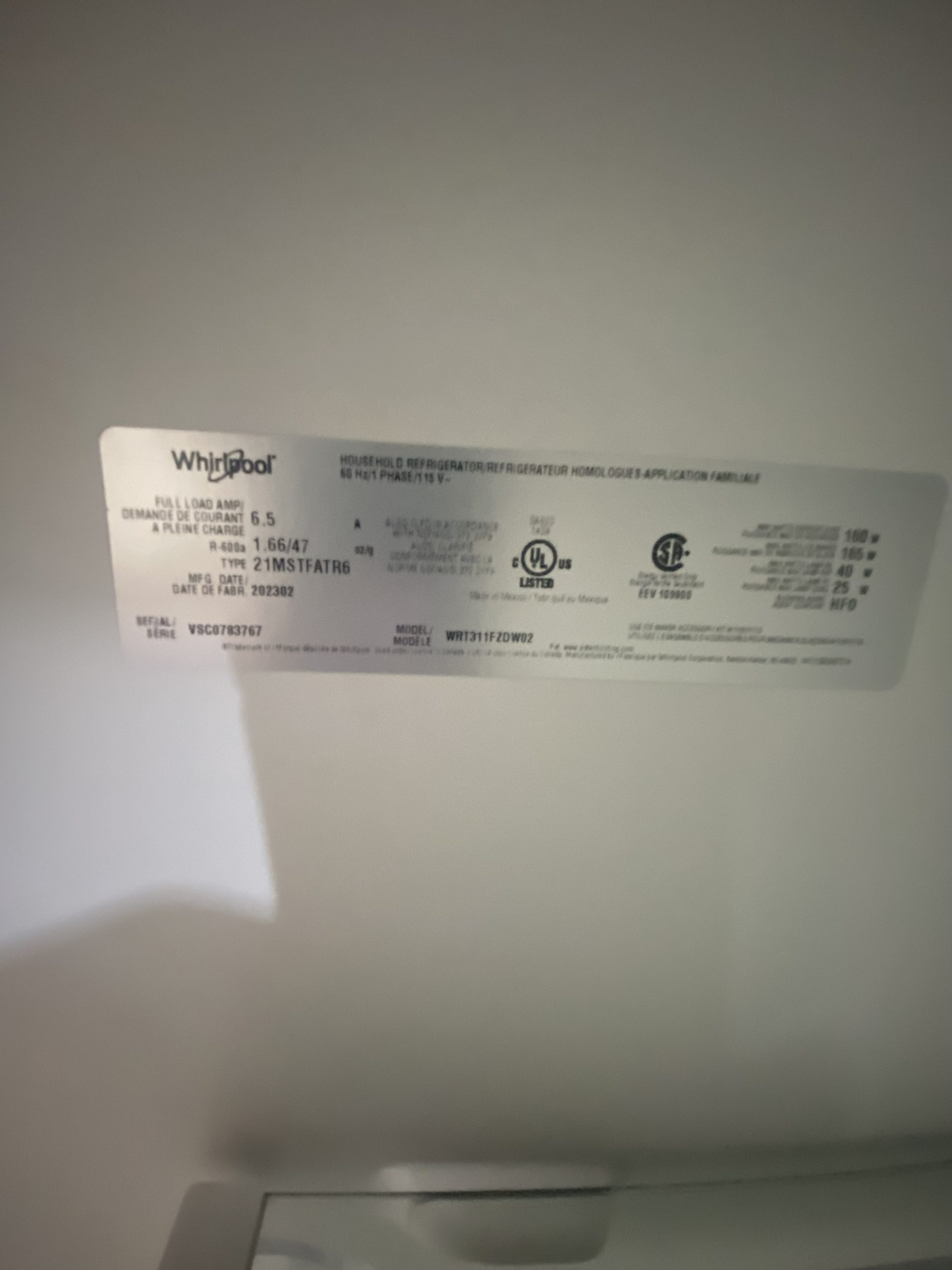 Used Whirlpool Top and Bottom WRT311FZDW02
