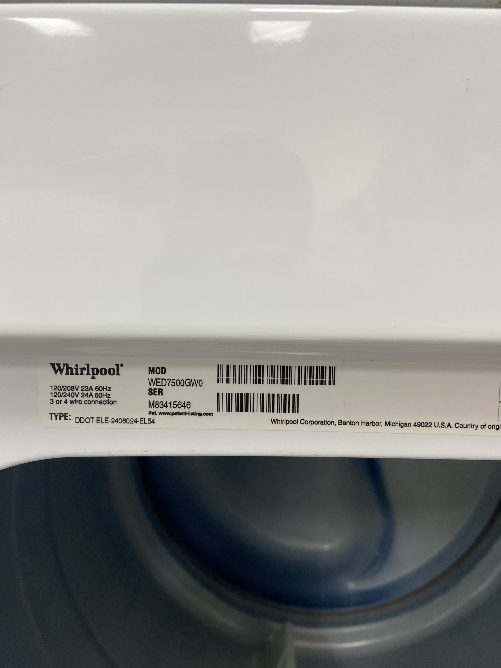 Whirlpool Front load Dryer WED7500GWO