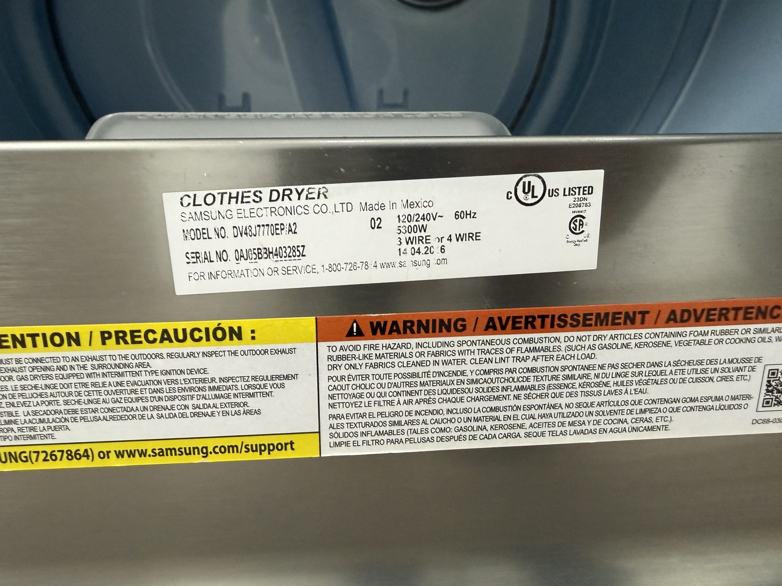 Used Samsung Front Load Electric Dryer DV48J7770EP/A2