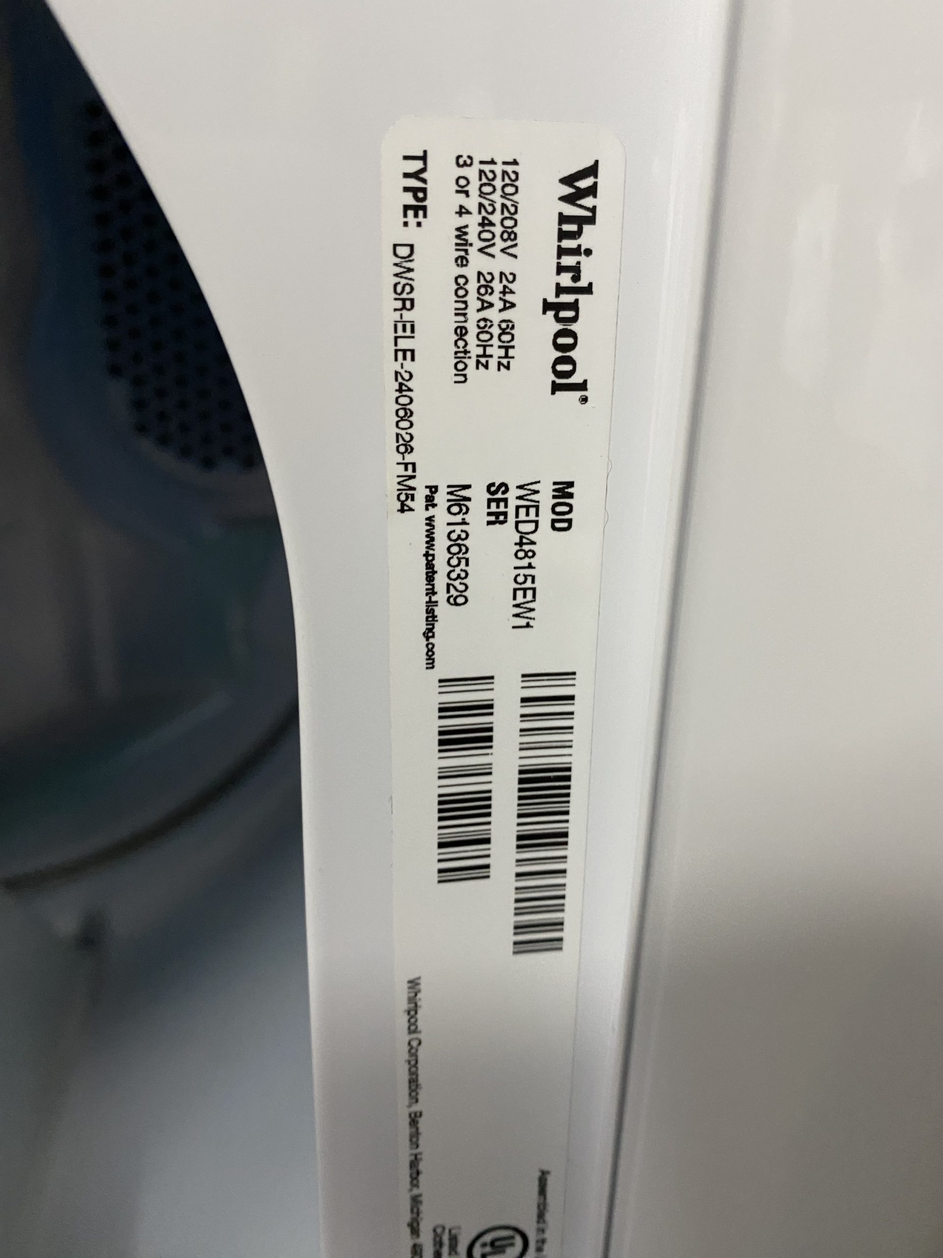 Used Whirlpool Front Load Electric Dryer WED4815EW1