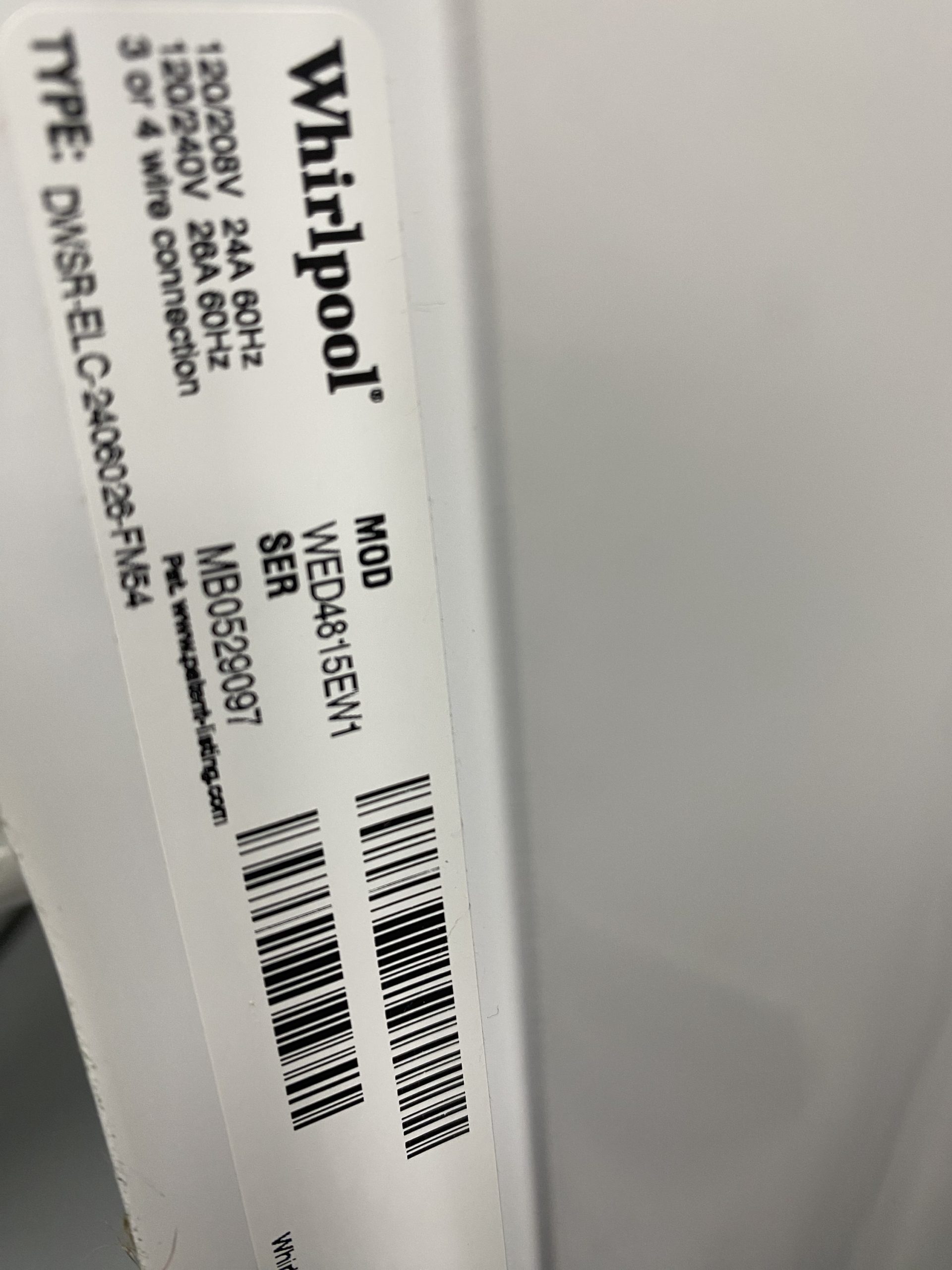 Used Whirlpool Front Load Electric Dryer WED4815EW1