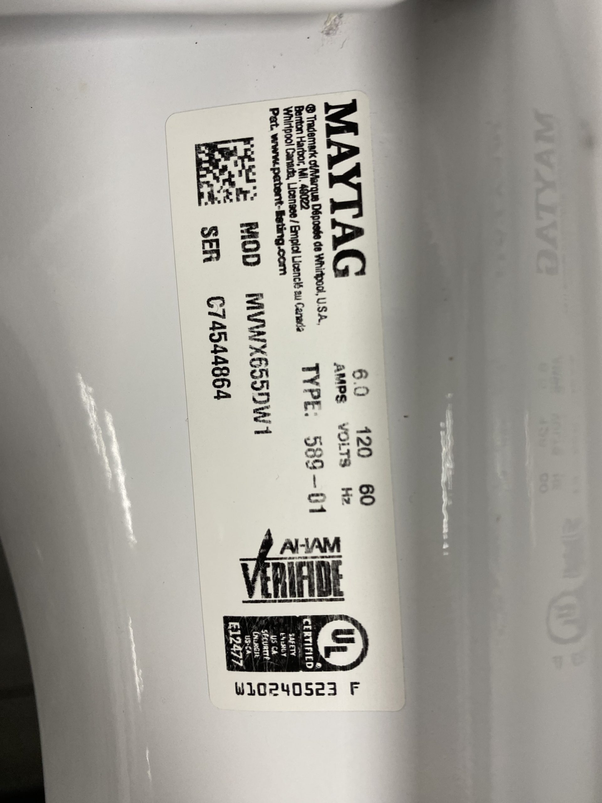 Used Maytag top Load Washer MVWX655DW1