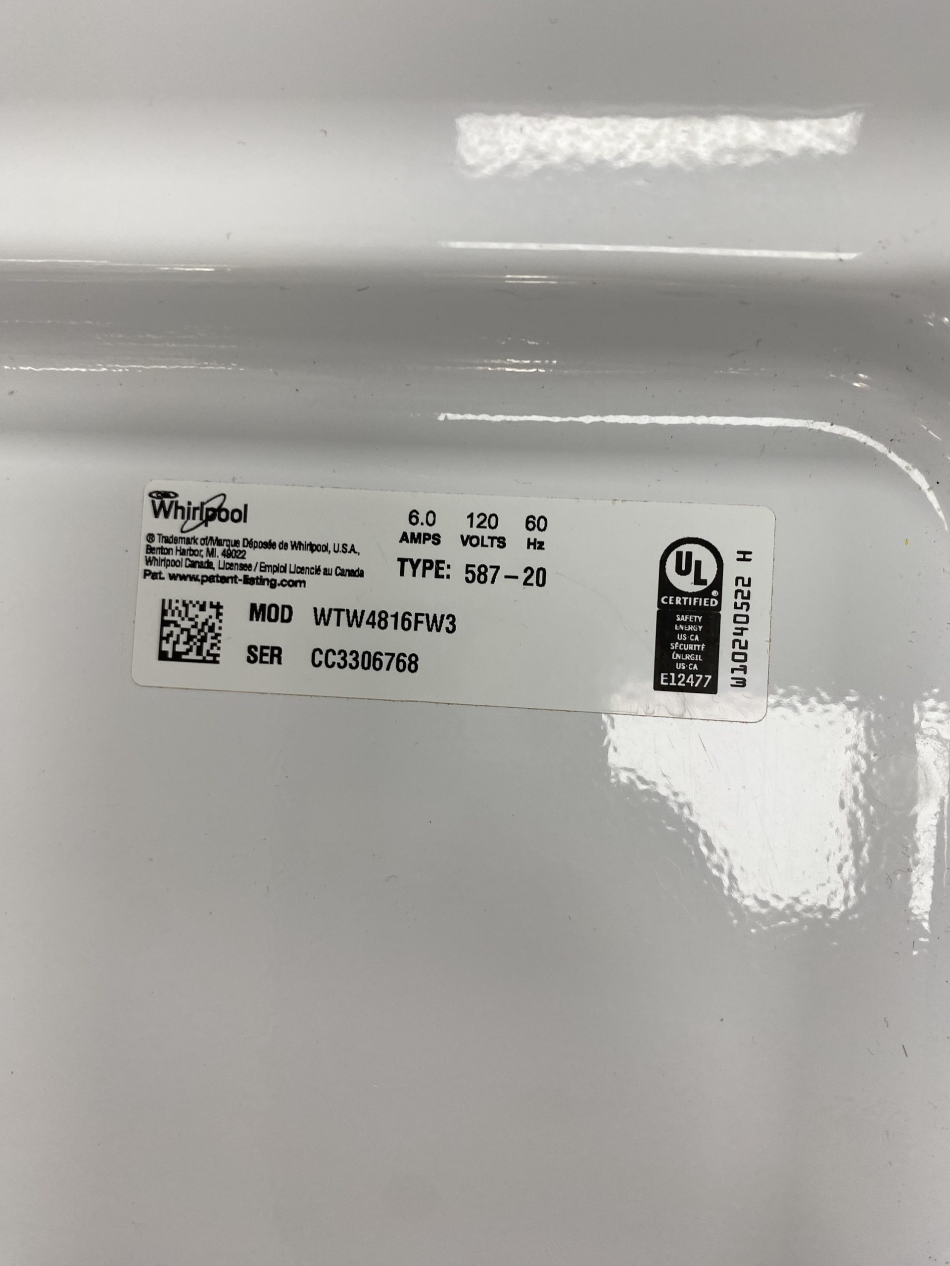 Used Whirlpool Washer WTW4816FW3