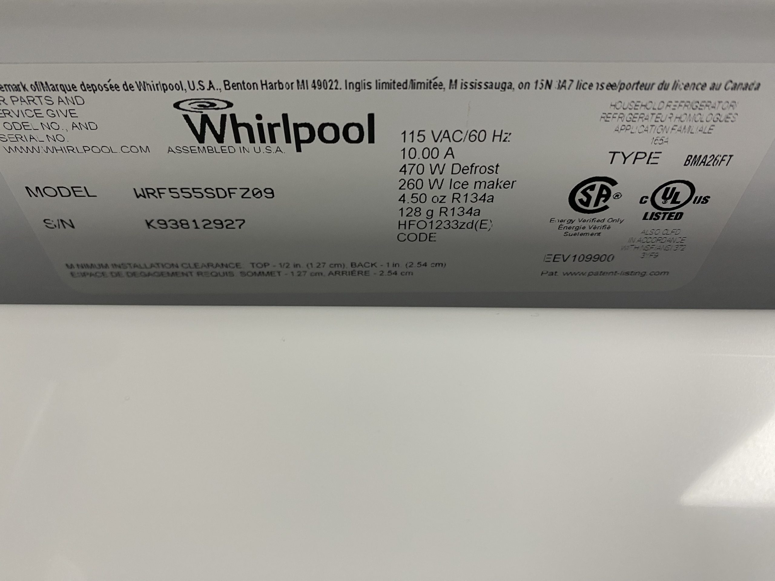 Used Whirpool French Door Refrigerator WRF555SDF209